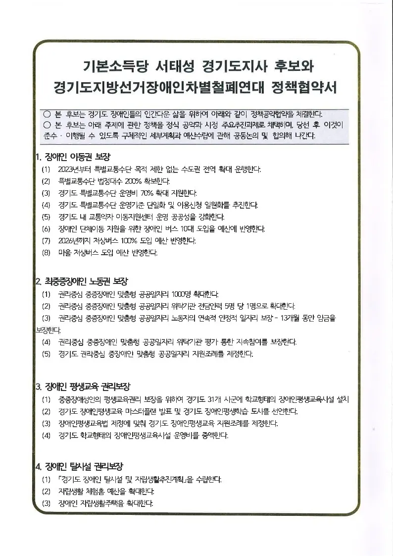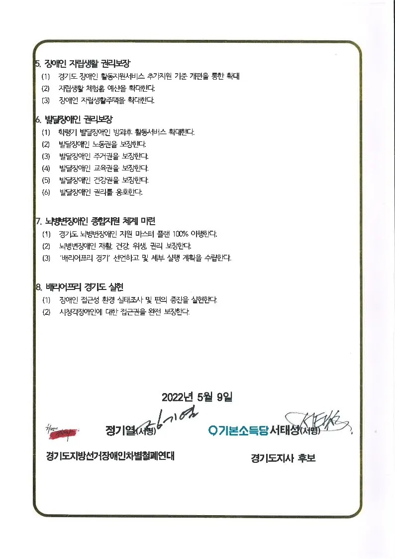 (5) 경기도 권리중심 중증장애인 맞춤형 공공일자리를 지원한다.